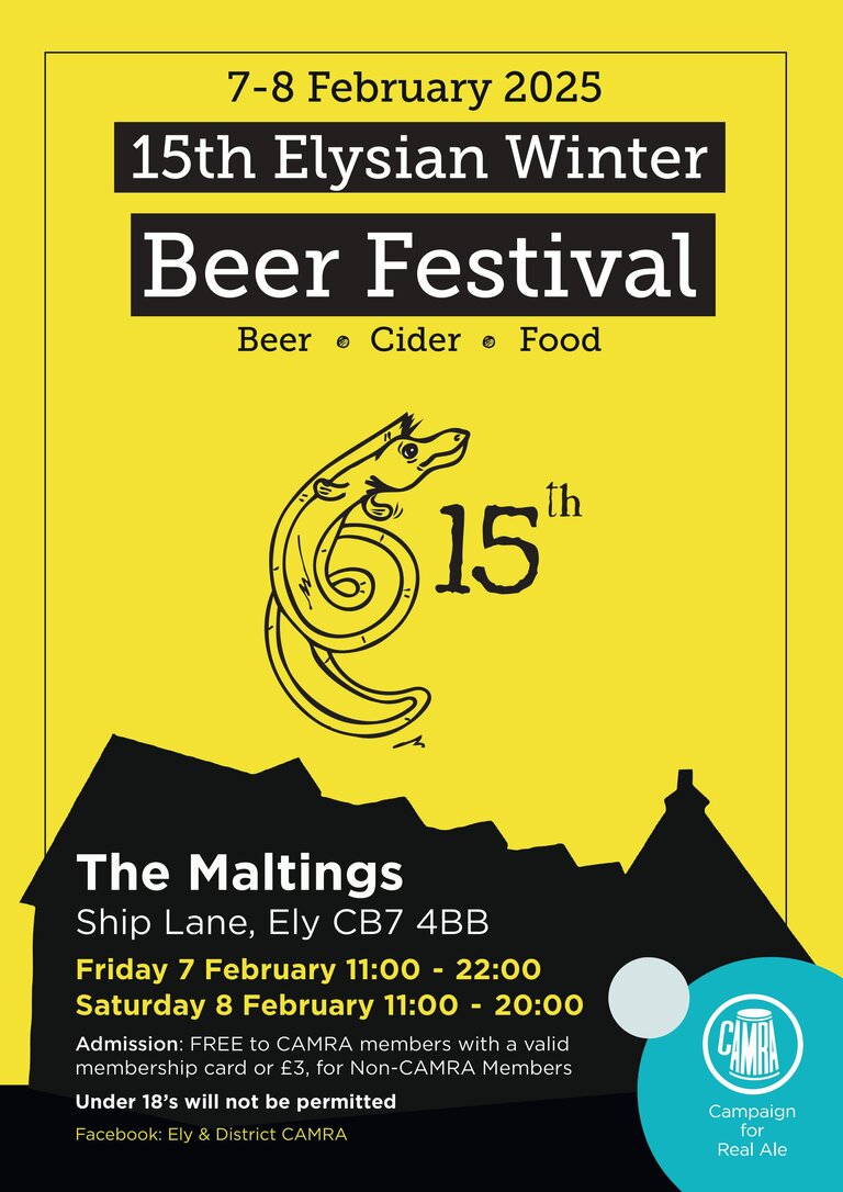 The 15th Elysian Winter Beer Festival will be held at the Maltings on Friday 7th and Saturday 8th February 2025.