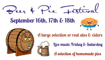 Friday, September 16, 2022 - 12:00pm to Sunday, September 18, 2022 - 11:00pmLarge selection of beers and ciders. Live music on Friday & Saturday Selection of homemade pies.
