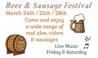 Friday, March 24, 2023 - 12:00pm to Sunday, March 26, 2023 - 10:30pmSelection of beers, ciders and sausages